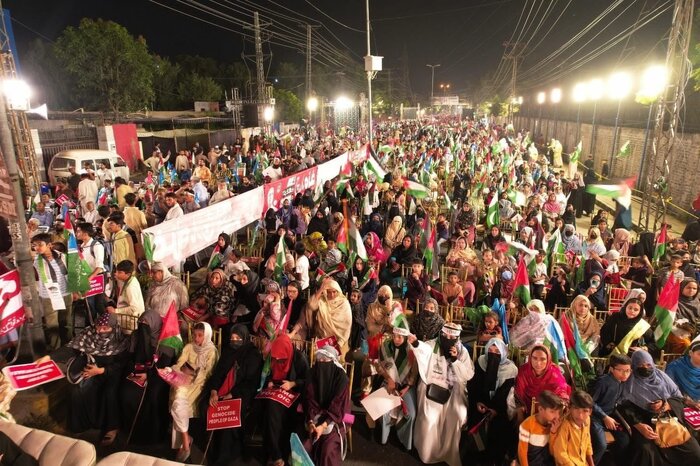 وفي كلمات ألقيت خلال هذا التجمع الجماهيري الملحمي، أدان المتحدثون الهجوم الإرهابي الذي شنّه الكيان الصهيوني على سفن اسطول "الصمود" العالمي المحمّلة بالمساعدات الإنسانية لغزة في المياه الدولية، وطالبوا بتحرك عاجل من جانب القادة العرب والمسلمين، وعلى رأسهم الحكومة الباكستانية، لإنقاذ ركّاب الأسطول، بمن فيهم مواطنو باكستان.