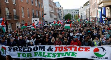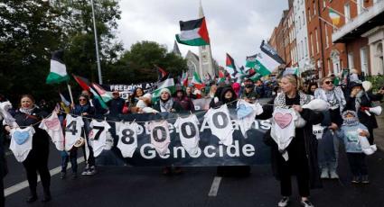 وفي دبلن، تجمع آلاف الأشخاص أمام البرلمان الأيرلندي لإحياء ذكرى مرور عامين على “الإبادة” في غزة، وفقا للمنظمين.