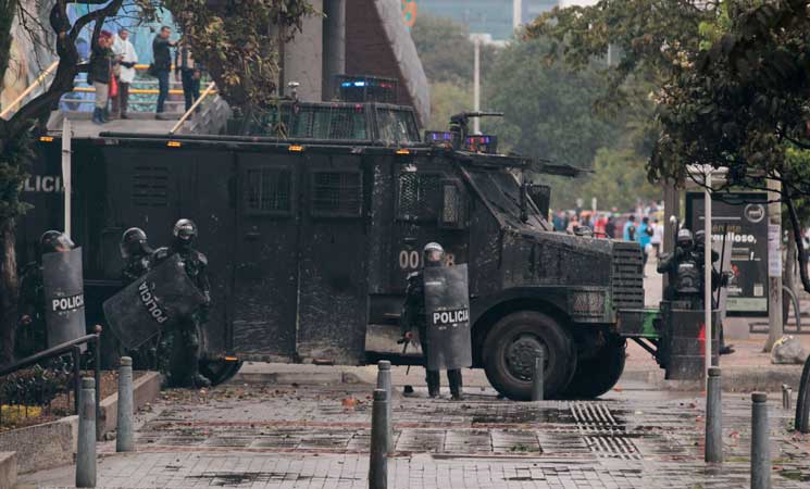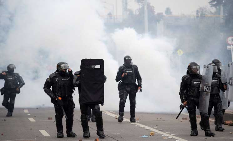 إلا أن هذه المظاهرات تحولت على مدار أيام إلى مواجهة مع ما يسمى ضباط إنفاذ القانون في السفارة الأمريكية في بوغوتا.