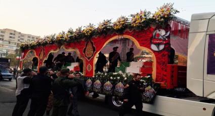وفي هذا السياق جرت مراسم الوداع لرفات 100 شهيد من هؤلاء الشهداء من أمام جامعة طهران، حيث جرى تشييعهم نحو روضة معراج الشهداء.