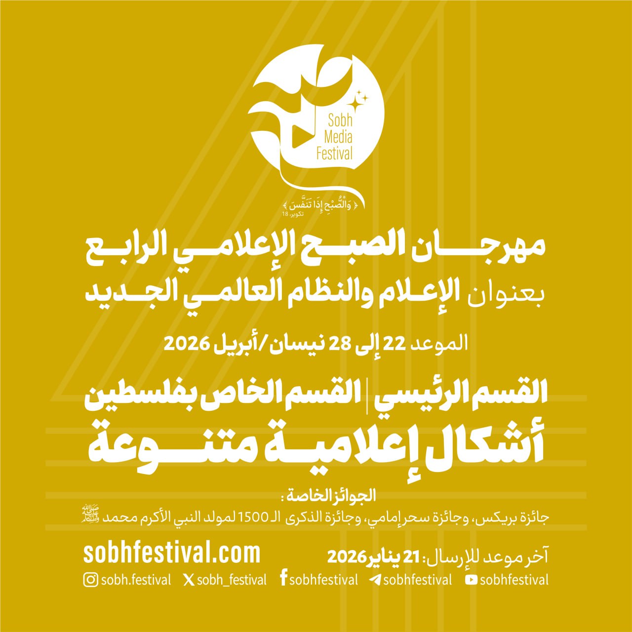 📄 النصّ الكامل للدعوة إلى تقديم الأعمال (https://sobhfestival.com/ar/news-ar/5006/4th-sobh-media-festival-calls-for-entries/)