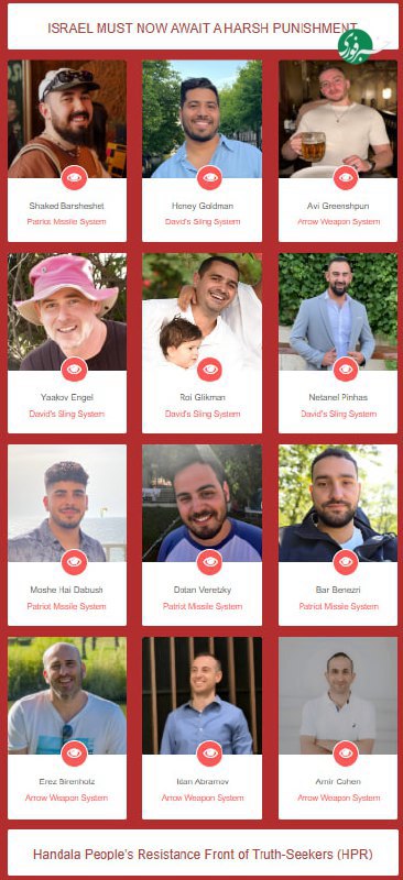 ووفقاً لـ"حنظلة"، فقد تم الكشف عن معلومات تخص 13 من المصممين الرئيسيين لأنظمة الدفاع "سهم" و"مقلاع داود".