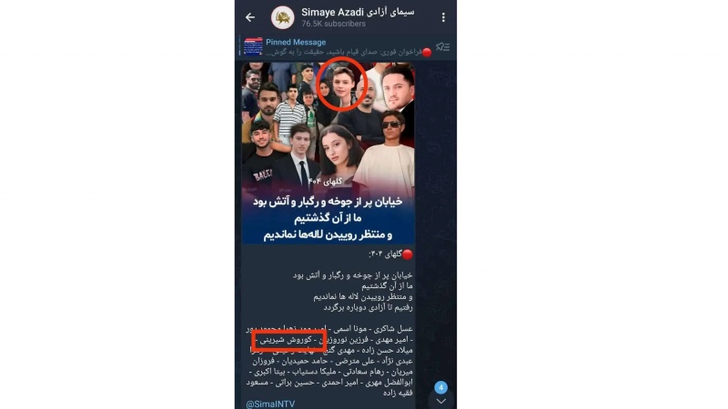 - نشرت وسائل إعلام تابعة لمنظمة مجاهدي خلق الإرهابية صورةً لفتى مراهق يُدعى "كوروش شيريني"، زاعمة أنه قُتل على يد قوات الأمن الإيرانية في شارع بيروزي بطهران خلال الاضطرابات الأخيرة. إلا أن البحث في مواقع التواصل الاجتماعي كشف أن الصورة المنشورة تعود إلى "ديفيد بينيت"، نجل "نفتالي بينيت"، رئيس الوزراء السابق للكيان الصهيوني.