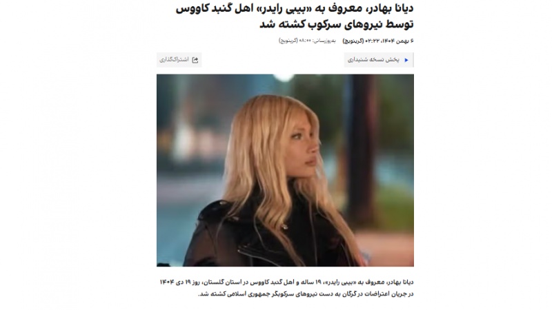ادعت بعض وسائل الإعلام الغربية أن فتاة تبلغ من العمر 19 عامًا تُدعى "شهرزاد مخامي"، والمعروفة أيضًا باسم "ديانا بهادر"، وهي مدونة تُعرف باسم "بيبي رايدر" من محافظة كُلِستان (شمال إيران)، قد قُتلت في أحداث الشغب التي اندلعت في 9 يناير/كانون الثاني؛ إلا أن التقارير تشير إلى أنها توفيت في حادث سير.