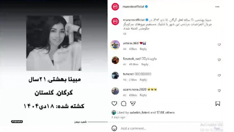 نبأ صفحة شبكة "مَن وتو" على إنستغرام عن مقتل "مبينا بهشتي"