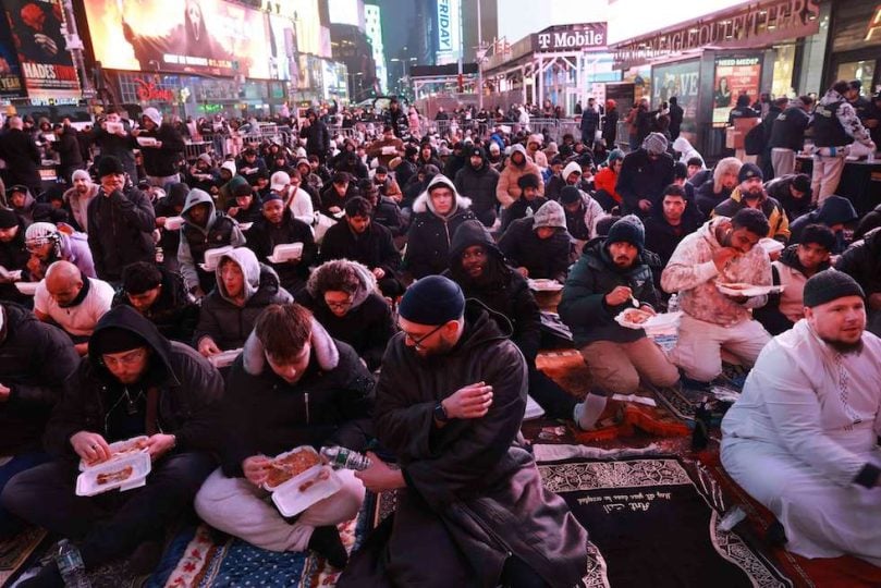 وقال المنظمون إنه جرى توزيع نحو 1500 وجبة إفطار مجانية. ويُعد شهر رمضان المبارك شهرًا للصيام والصلاة والتأمل لدى المسلمين حول العالم.