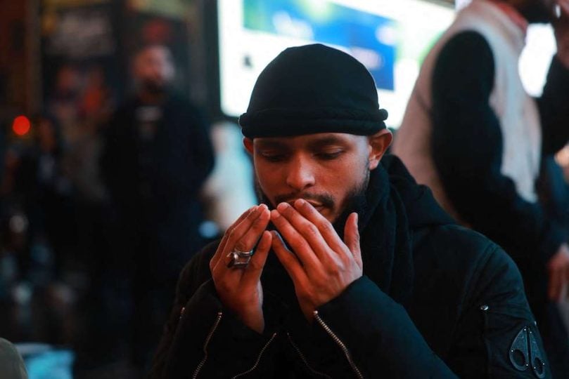 ومع أذان المغرب، أنهى المشاركون صيامهم على وقع الأدعية والتكبيرات، قبل أداء الصلاة في الساحة.