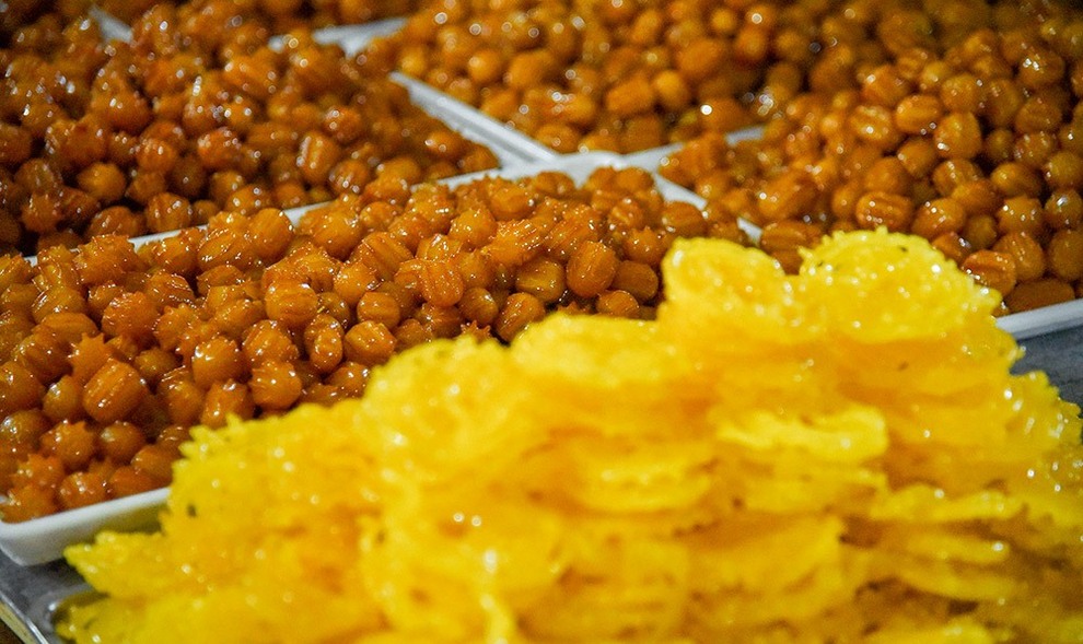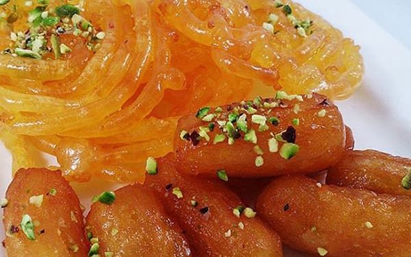 الزلابية حلوى مقرمش، مصنوع من عجين مقلي مخمور في شراب لذيذ، مقرمشة من الخارج، ناعمة من الداخل، هذه الحلويات الصغيرة تقطر دائمًا مع شراب الزعفران الحلو.
