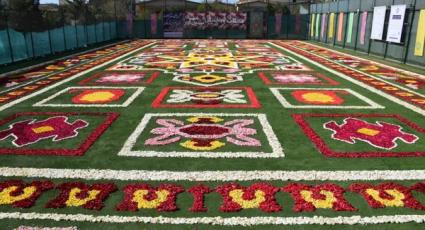 شاهد.. كشف النقاب عن أكبر سجادة زهرية في المنطقة+ صور