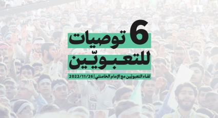مقطع فيديو يتضمن كلام الإمام الخامنئي بخلال لقاء مع التعبويين، ويعرض فيه سماحته 6 توصيات خاصة بهم في شتى المجالات.
