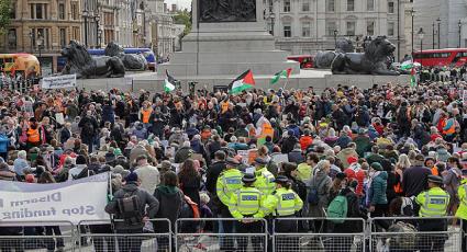 شهدت العاصمة البريطانية لندن احتجاجات شعبية للمطالبة بالإفراج عن ناشطي منظمة العمل من أجل فلسطين “فلسطين أكشن”، الذين يخوضون إضراباً مفتوحاً عن الطعام في السجون البريطانية، رفضا لاحتجازهم “غير القانوني”.